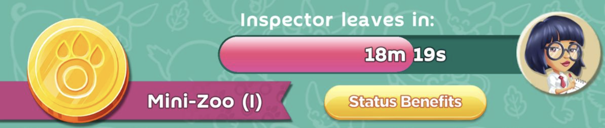 - المؤقت الأزرق يشير إلى الوقت المتبقي حتى تصل كاري موندو إلى حديقة الحيوان ويمكنها إجراء التفتيش لرفع حالة الحديقة.